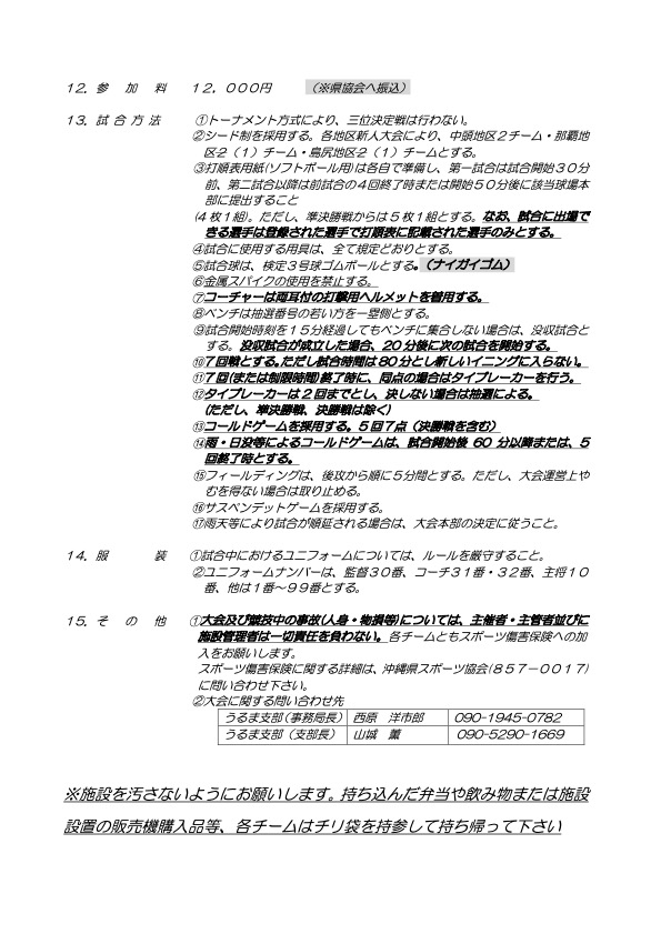 申込先メールアドレス:okinawa.softballassociation@gmail.com