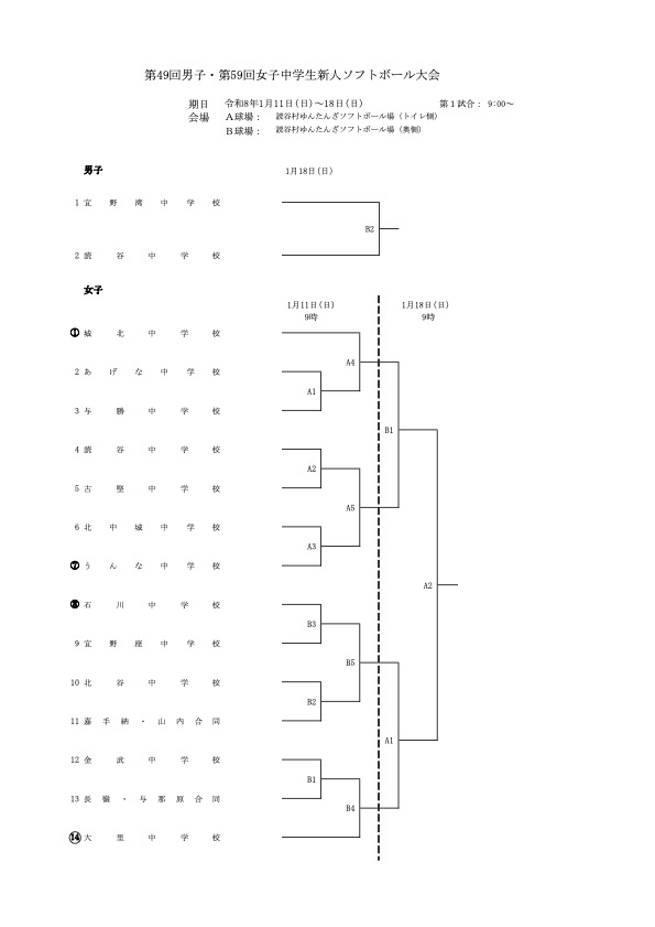 > 【中学校】第49回男子、第59回女子中学生新人ソフトボール大会 抽選結果