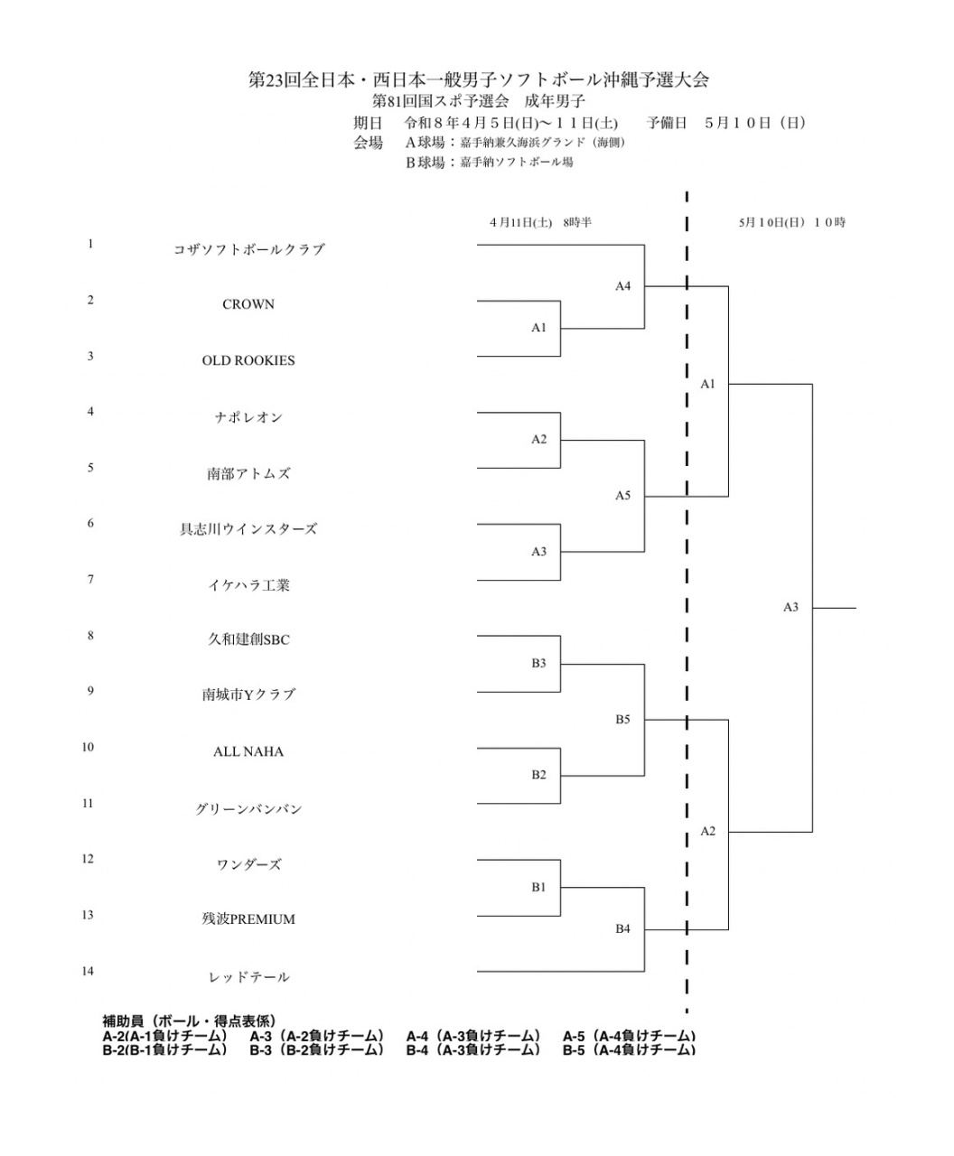 令和8年4月5日(日)開催予定でした第23回全日本・西日本一般男子ソフトボール選手権大会沖縄予選会ですが、