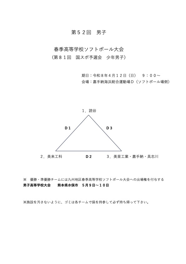 第52回男子春季高等学校ソフトボール大会 組み合わせ表