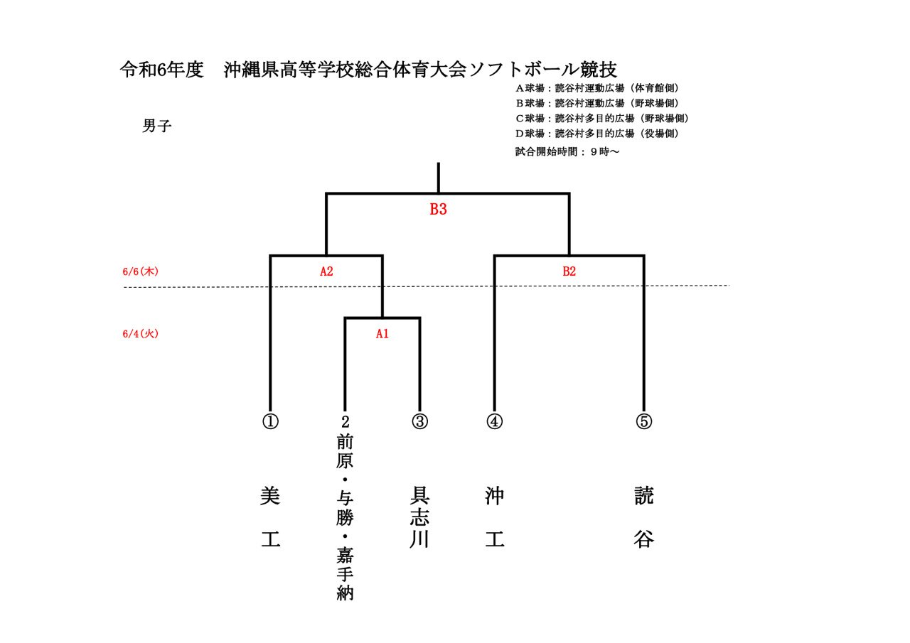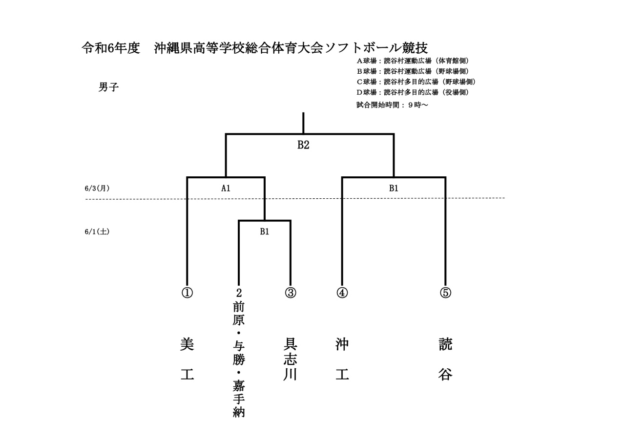 令和7年5月24日(土)〜26日(月)の日程にて『沖縄県高等学校総合体育大会』が読谷村にて開催されます。トーナメントは下記の通りです。