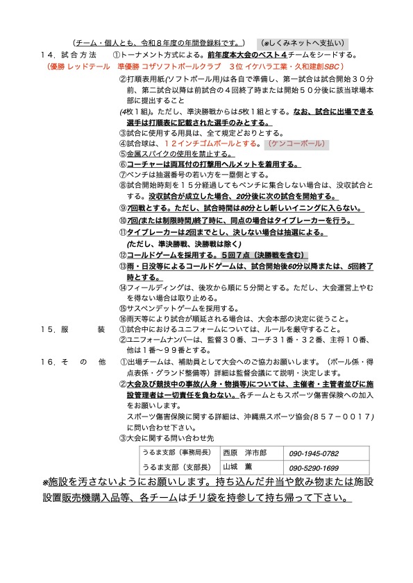 大会要項:【訂正版】【一般男子】第22回春季一般男子ソフトボール大会 大会要項