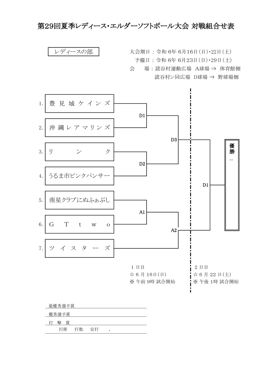 【レディース・エルダー】第30回夏季レディース・エルダーソフトボール大会 組み合わせ表
