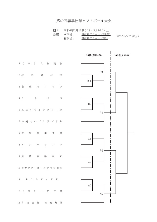 令和6年3月10日(日)・16日(土)に行われる、第49回春季壮年ソフトボール大会の抽選が決まりました!選手の皆さん怪我に気を付けて頑張ってください(^^)/