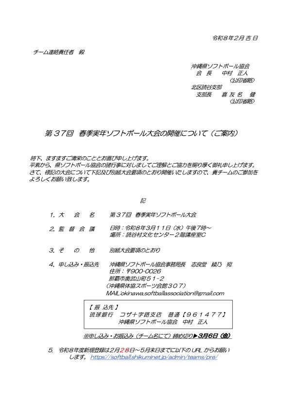 申込先メールアドレス:okinawa.softballassociation@gmail.com