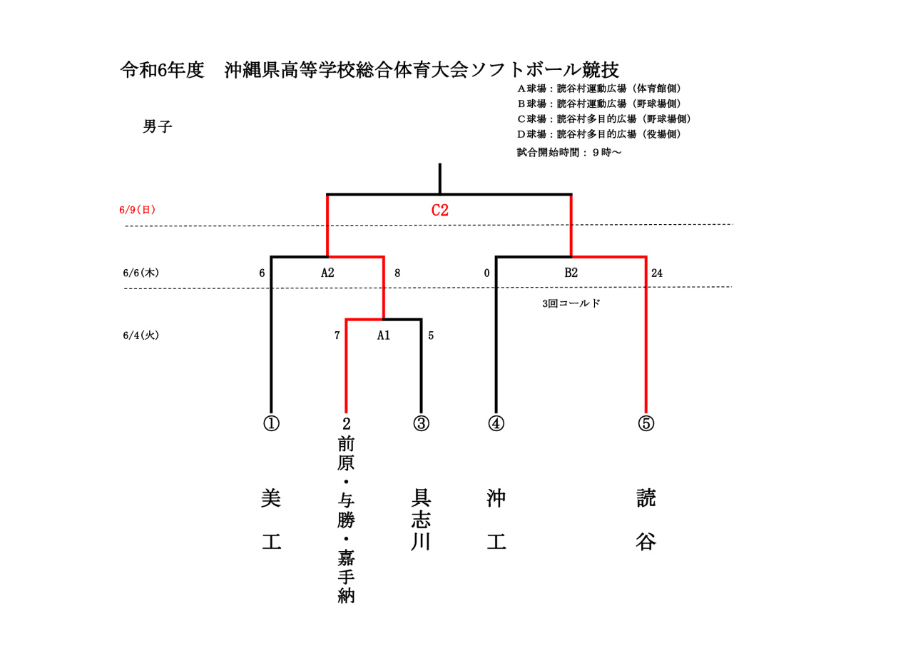 | 読谷高等学校 | 0 | 0 | 4 | 0 | 0 | 0 | × | 4 |