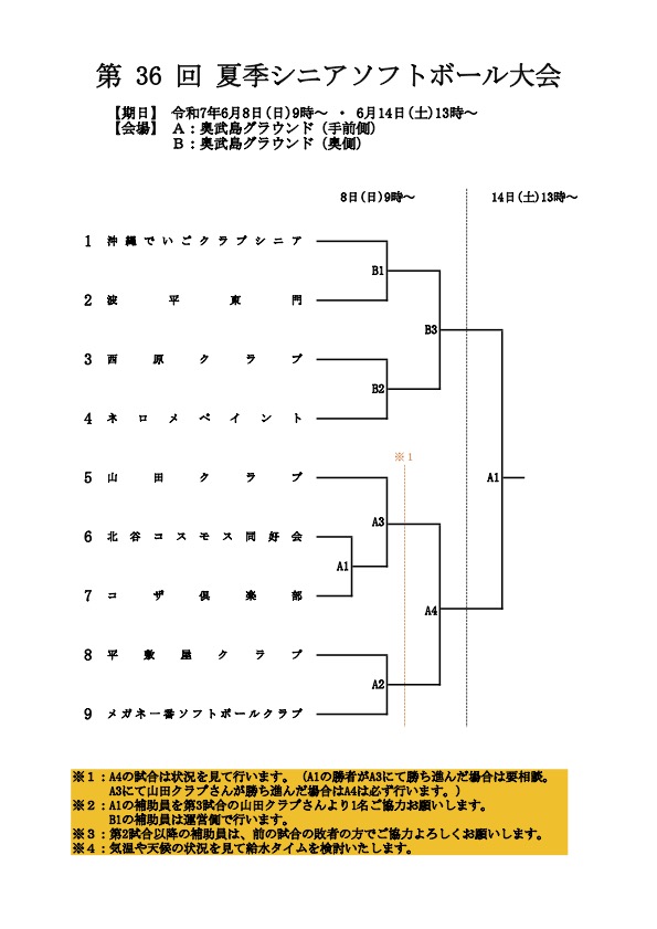 【シニア】第36回夏季シニアソフトボール大会 組み合わせ表