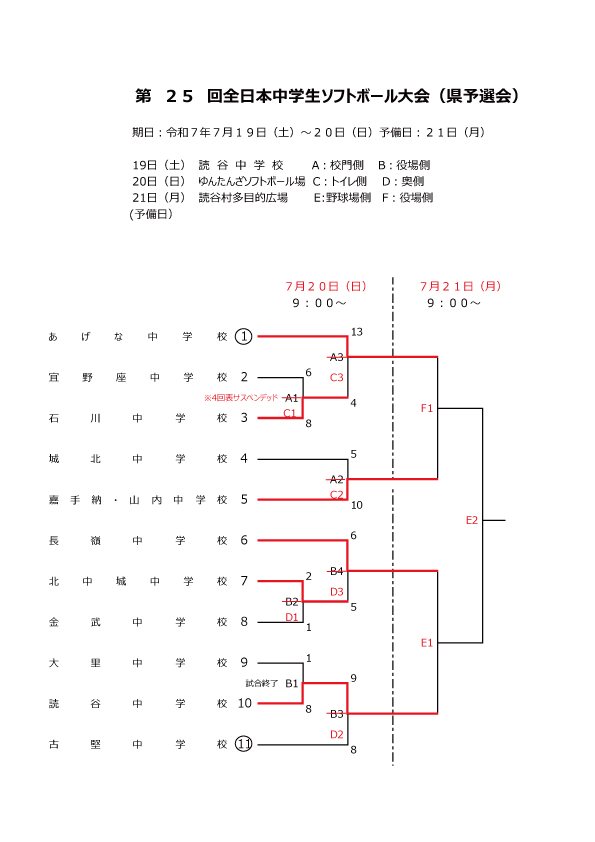 第25回全日本中学生ソフトボール大会(大会2日目)の結果です。