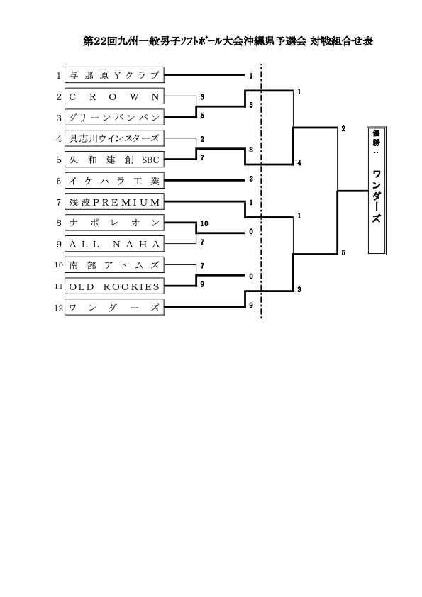 第22回九州一般男子ソフトボール大会沖縄県予選会 最終結果