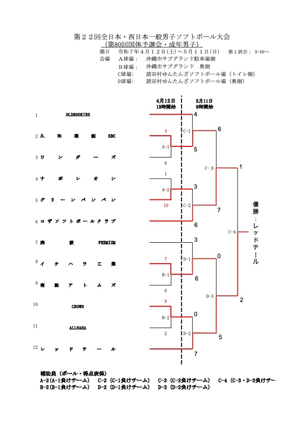 | 沖縄レアマリンズ | 0 | 1 | 1 | 0 | 0 | 0 | 1 | 3 |